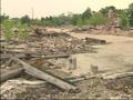 Description: A group of skateboarders has worked to clean up the rubble of a former textile mill so that they can use it for a place to practice. |